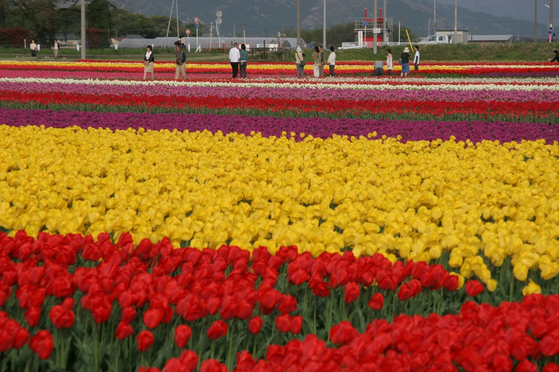 巣本地区は、ふたつの川にはさまれた場所。その昔、川が氾濫したことで砂地の土壌となったため、チューリップの栽培に適しています。オランダなどから球根を輸入したり品種改良を行い、春には多種多様かつ鮮やかな花が咲き誇ります。