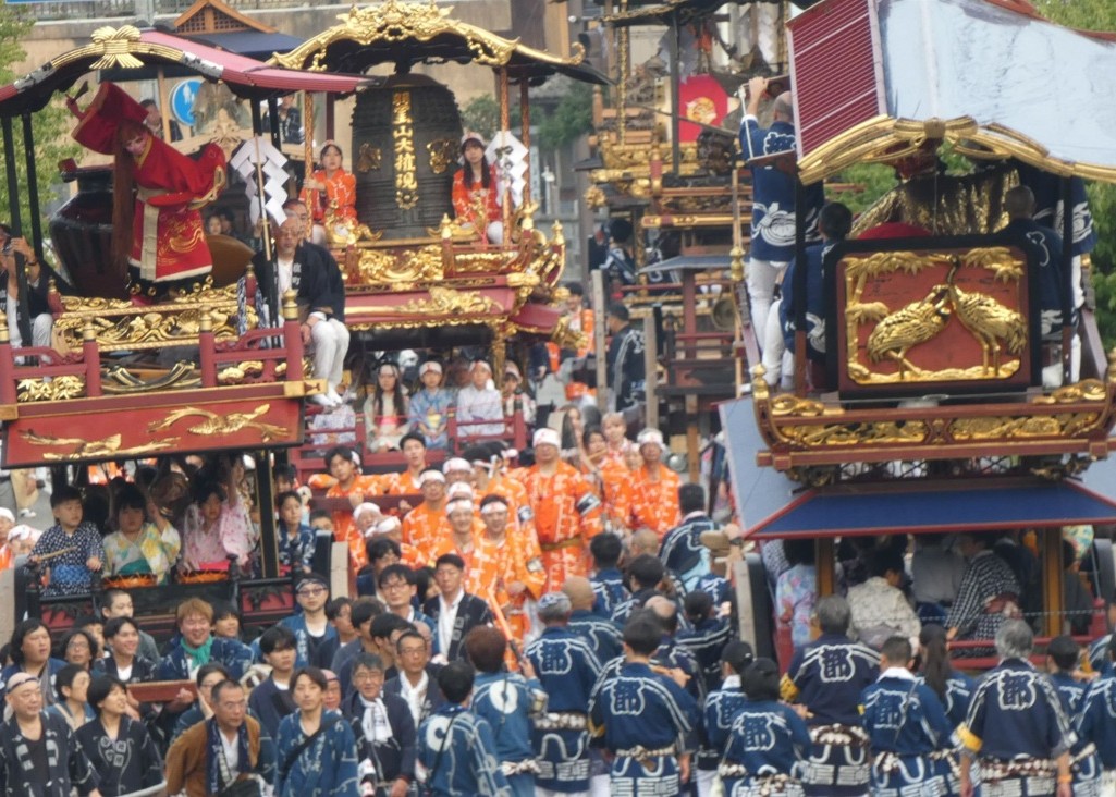 おしゃぎりと、それを牽引する人々がまとう法被(はっぴ)の意匠は町ごとに異なります。実際に村上市を訪れて大祭を間近で見れば、城下町の昔ながらの町並みと祭りの一体感、人々の熱気に驚くことでしょう。おしゃぎりの前を横切ったり近づきすぎないよう、気をつけて観覧しましょう。
