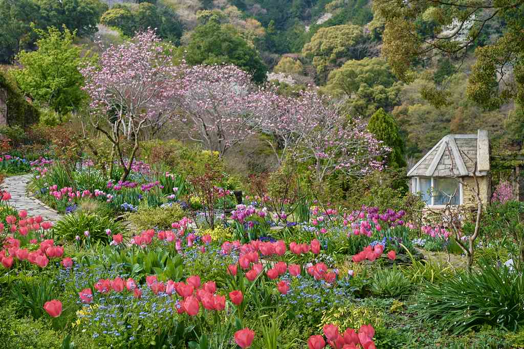 静岡県熱海市上多賀にあるACAO FORESTは、個性豊かな13のテーマガーデンや季節の花々、ハーブ、アート作品が楽しめる自然派リゾートパーク。太平洋を望む丘陵地の景観を生かし、隈研吾氏設計のカフェ「COEDA HOUSE」、曽我浅間神社、ギフト&ワークショップ施設「cokage」など、さまざまな施設や体験コンテンツが点在しています。また、年間を通じて四季の花々やイベントが開催され、春・夏・秋・冬それぞれの魅力を楽しめる人気スポットです。