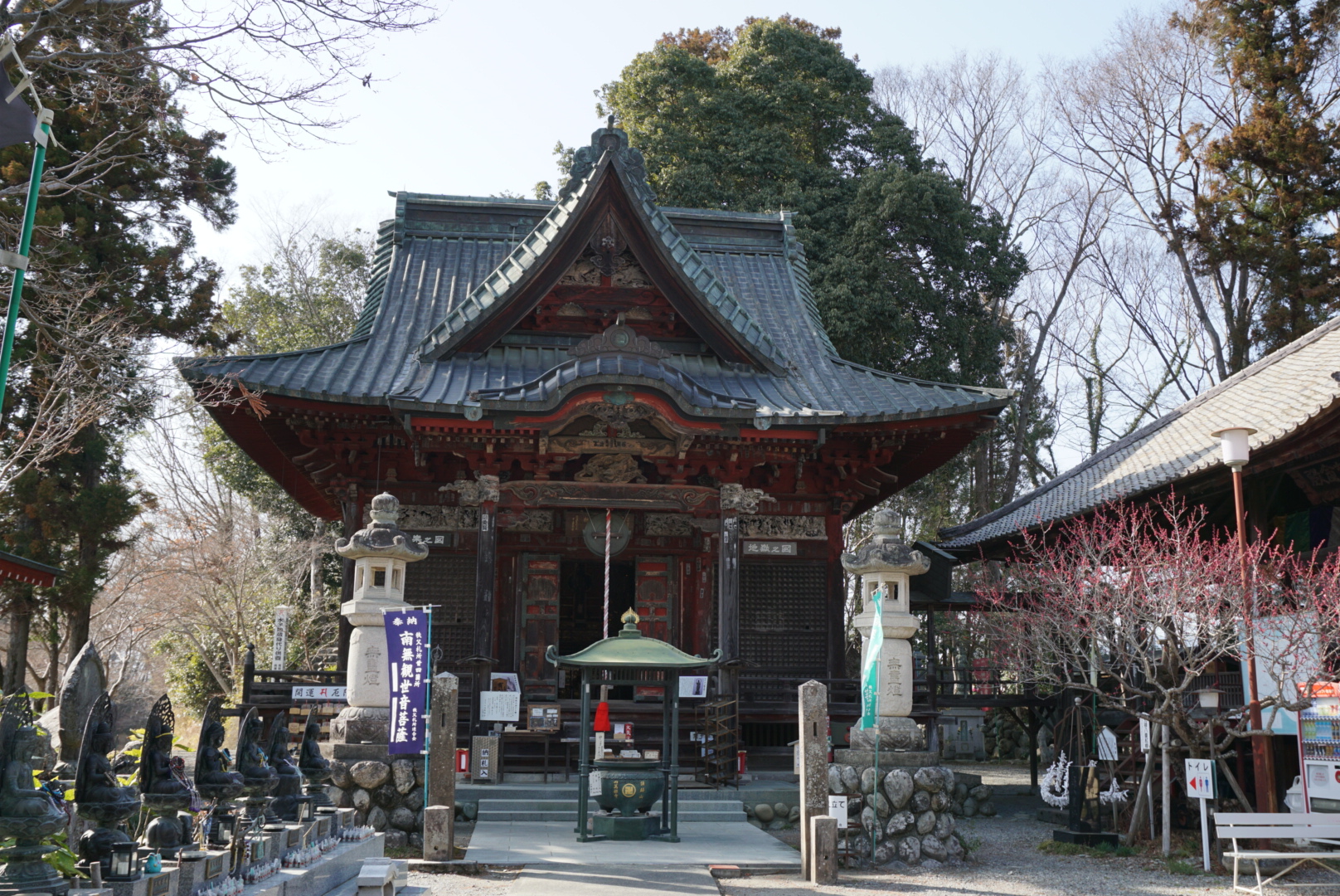 西武秩父駅や秩父鉄道御花畑駅から徒歩圏内にあり、巡礼のスタート地点として訪れる人も多い慈眼寺。目の健康にご利益がある観音様として知られています。境内には秩父札所連合会の事務所もあり、巡礼用品も揃っています。