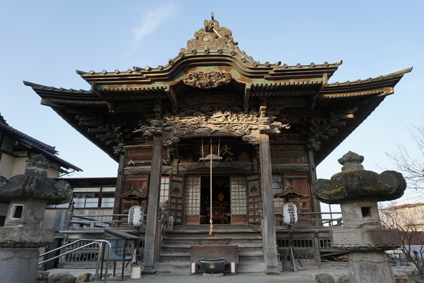 音楽寺の名の由来は、秩父札所を開創した十三権者が聞いた山の松風の音を、菩薩の奏でる音楽と感じたからといわれています。音楽関係者の参拝も多く、本堂にはヒット祈願のポスターなどがたくさん貼られていました。江戸時代に鋳造された境内の梵鐘は秩父市指定文化財で、前庭からは秩父市街を見渡せます。