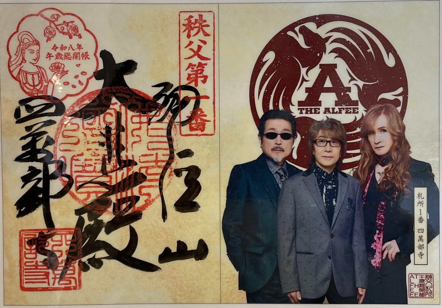また、ロックバンド「THE ALFEE」とのコラボにも注目。ベースの桜井賢氏の故郷であり、高見沢俊彦氏と坂崎幸之助氏が午年生まれという縁で、「秩父札所午歳総開帳× THE ALFEE コラボレーション」が実現。秩父札所の全34寺で「アルフィー歌朱印」も総開帳の期間限定で頂けます。