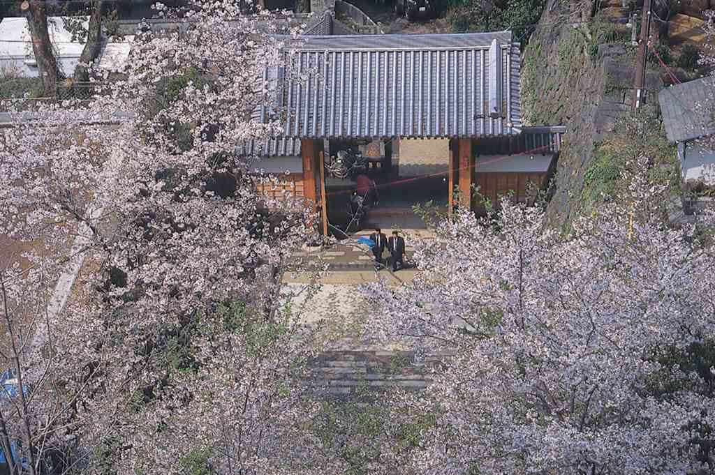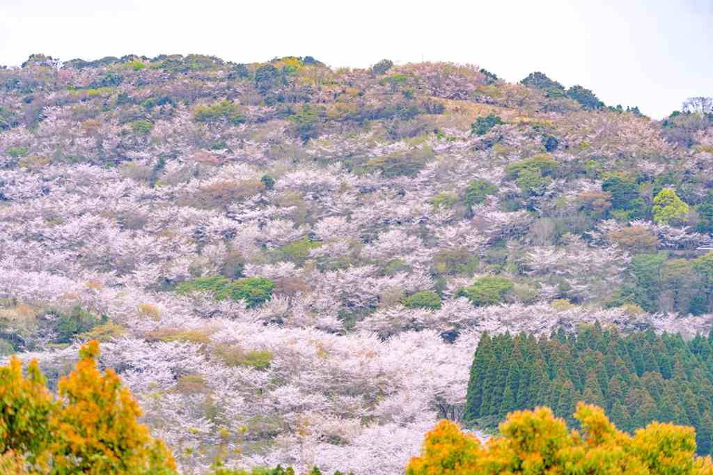 花立公園は、標高489mの花立山に位置し、約20ヘクタールの敷地を誇る広大な園。3月下旬~4月上旬頃に、ソメイヨシノやヤマザクラなど約1万本の桜が鮮やかに咲く、宮崎県内でも屈指のスケールを誇る桜の名所。遊歩道や休憩所、展望台があり、ウォーキングにも最適です。