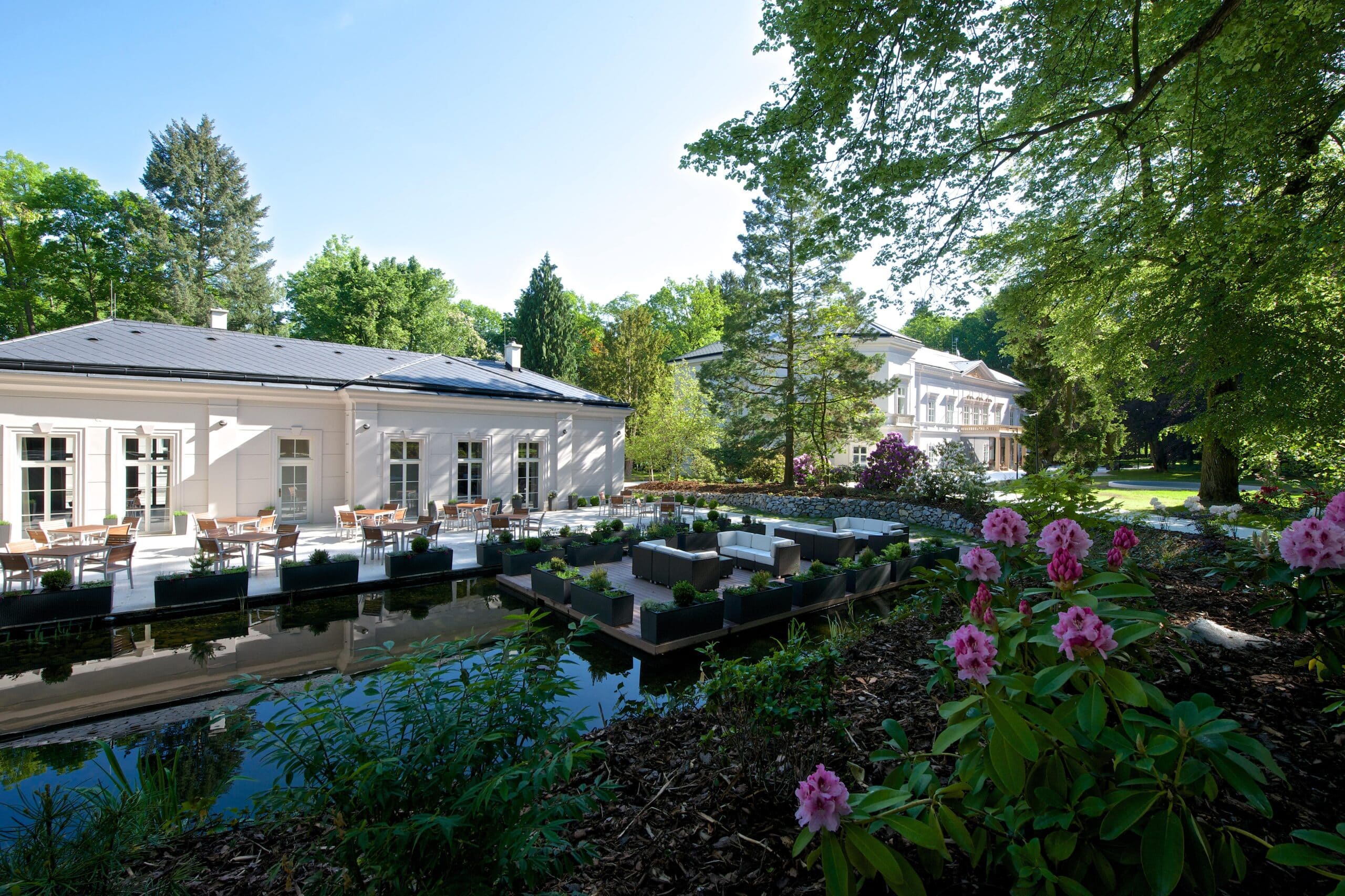 ベネショフ近郊の村、ラトメリツェにあるブティックホテル。もともとは19世紀建造のネオクラシック様式の城館でしたが、モダンなデザインにリノベーションされホテルとして開業しました。周囲は森に囲まれており、チェコでは最も高い42mの2本のセコイアはホテルのシンボル。地元食材を使ったチェコ料理が楽しめるレストランでの食事も楽しみです。