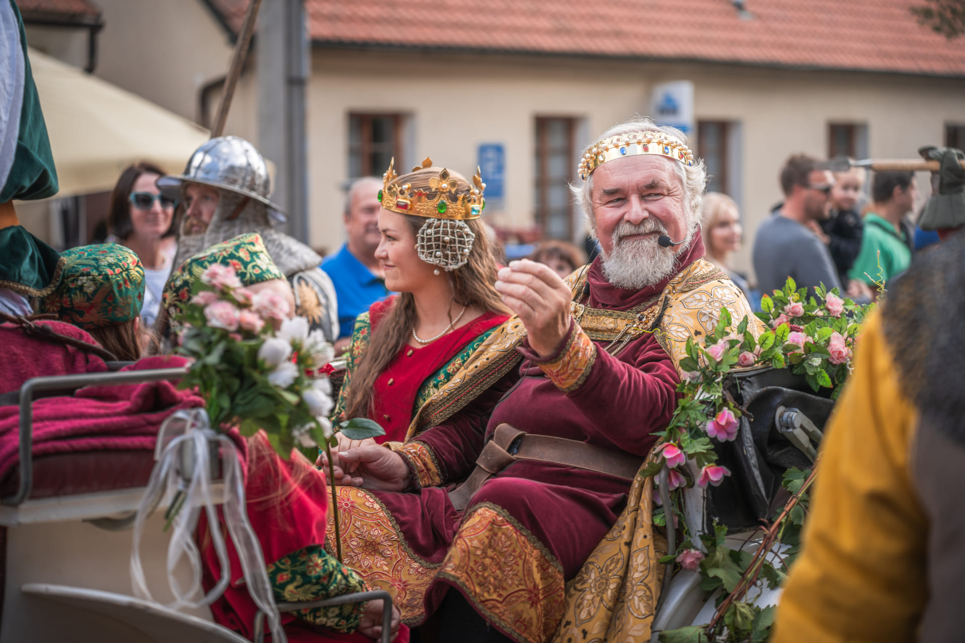 カルルシュテイン城のお膝元にある町、カルルシュテインは、チェコを代表するワインの産地としても知られています。毎年9月下旬にはブドウの収穫を祝う祭りが盛大に行われます。人々は中世の服装に身を包み、通りを練り歩きます。グルメの屋台やライブパフォーマンスが町のあちこちに出て盛り上がります。クライマックスは、2日間の祭りのフィナーレを飾るパレード。カレル4世を先頭に、臣下たちが町のメイン通りを行進します。