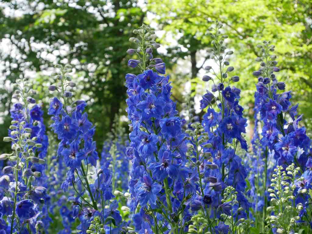 草丈が1mほどと、すっと伸びた花姿と鮮やかなブルーが印象的なデルフィニウム。花畑に凛としたアクセントを添えてくれ、ポピーやネモフィラとは異なる美しさが魅力です。初夏の訪れを感じさせる、上品な彩りを楽しめます。