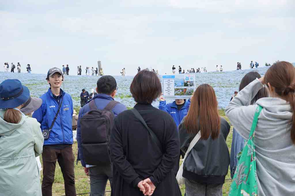 見頃の時期にあわせて、園内ではネモフィラの魅力をより深く楽しめる各種プログラムを開催。花の見どころや撮影スポットを紹介するガイドイベントのほか、押し花を使ったアロマワックスバー作り体験など、多彩なコンテンツがあります。