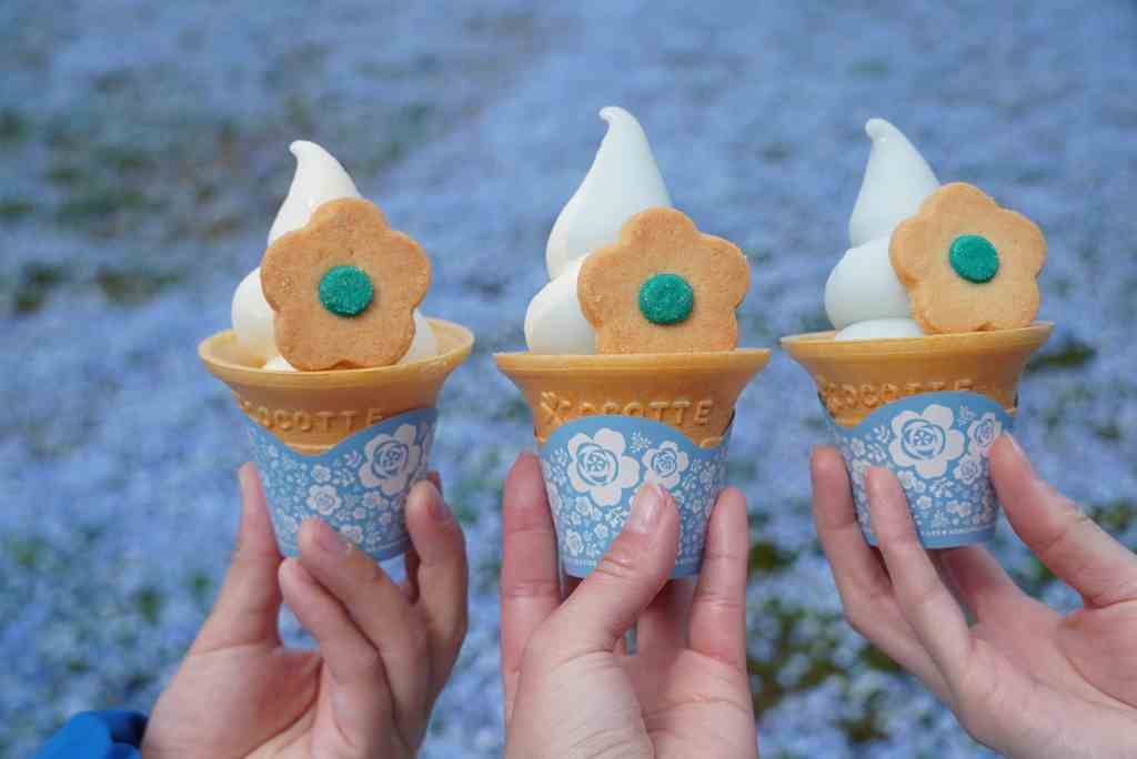 ネモフィラとあわせて楽しみたいのが、春限定のネモフィラグルメ。人気の「ネモフィラブルーソフト」や「児玉冷菓のババヘラアイス ネモフィラ」など、人気スイーツが揃います。