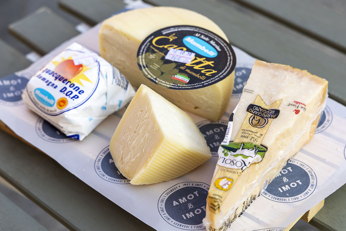サラミや生ハムなどの肉加工品は持って帰ることができませんが、チーズは持ち帰りOK! 加工食品の専門店である「サルメリア」やスーパー、食料品店で購入すると、しっかり梱包してくれることも多いです。スーツケースに入れて帰国するなら、チーズの王様パルミジャーノ・レッジャーノをはじめとするハードタイプのものがおすすめ。
