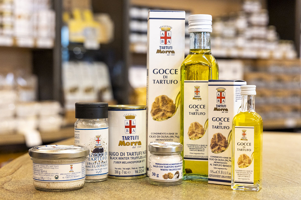 土産物として絶大な人気を誇るトリュフ加工品は、本場の香りを手軽に持ち帰れるのが魅力です。特に希少な「白トリュフ」の産地として知られるピエモンテ州のアルバでは、毎年秋に白トリュフ祭りが開催されるほど。トリュフ塩やトリュフが香ばしいオリーブオイルなど、さまざまな加工品のショップも点在しています。本場アルバのおすすめ店は、タルトゥーフィ・モッラ。