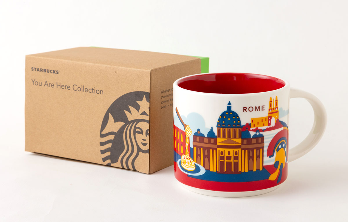 各地の土産物店で売られているマグカップですが、イタリアらしいモチーフが描かれたスターバックスのマグカップは必見! ローマの店舗で販売されているマグカップはサン・ピエトロ大聖堂やトレヴィの泉、コロッセオなどが描かれているので、帰国後も使うのが楽しみになりますよね。飲み物がたっぷり入る容量も見逃せない点です。各都市でモチーフが異なるので、集めてみましょう!